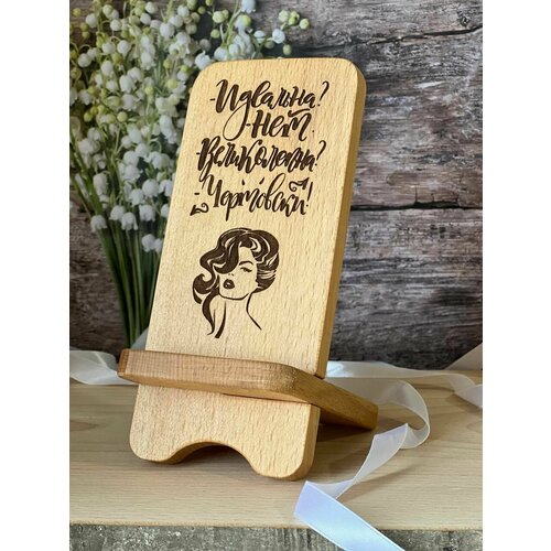 Подставка для телефона из дерева Rossovideti с гравировкой "шальная императрица"