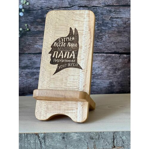 Подставка для телефона из дерева Rossovideti с гравировкой Папа-герой