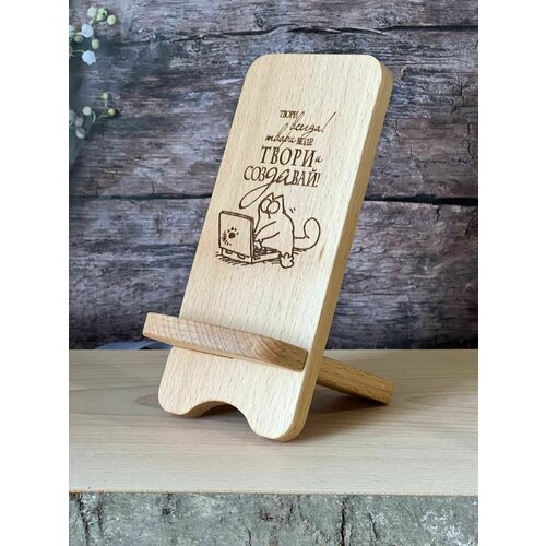 Подставка для телефона из дерева Rossovideti с гравировкой "Твори и создавай"