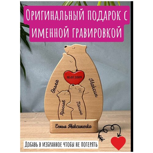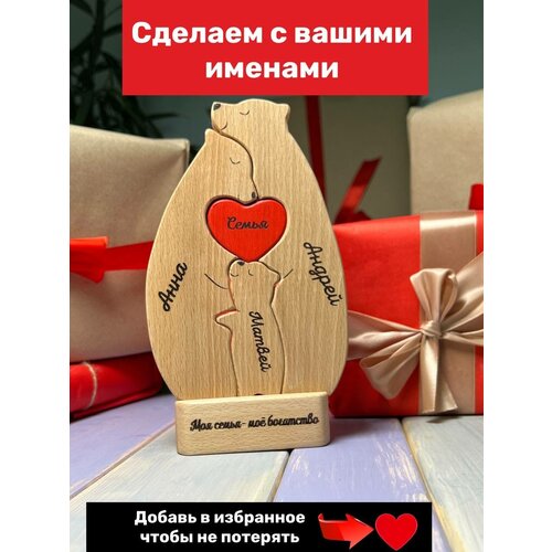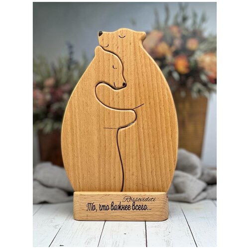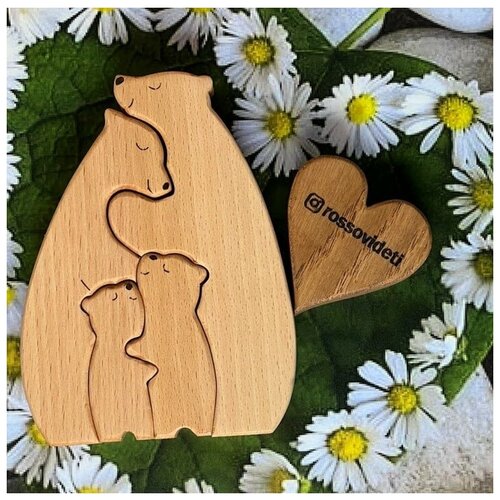 Деревянная статуэтка Семья медведей, Rossovideti, подарок на годовщину, подарок на свадьбу