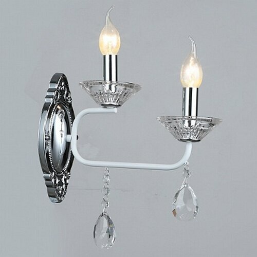 Бра A3810/2W WT+CR белый, хром, хрусталь 40W Е14