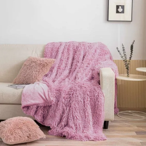 Пушистый плед-покрывало с длинным ворсом Royal Luxery, 230х210 см (пыльная роза)