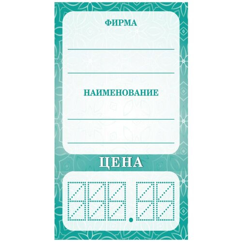 Ценники картонные Бирюзовый-Цветы, 50х90 мм, 400 шт. 600005316107