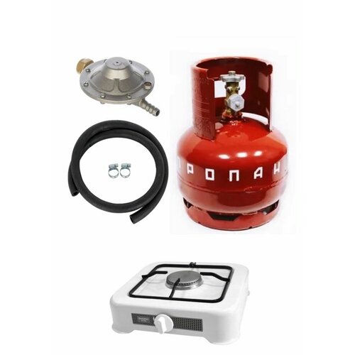 Комплект газовый, туристическая/дачная газовая плита, баллон 5л (без газа), шланг(рукав) пропан d-9мм, редуктор РДСГ 1-1,2 , 2 хомута