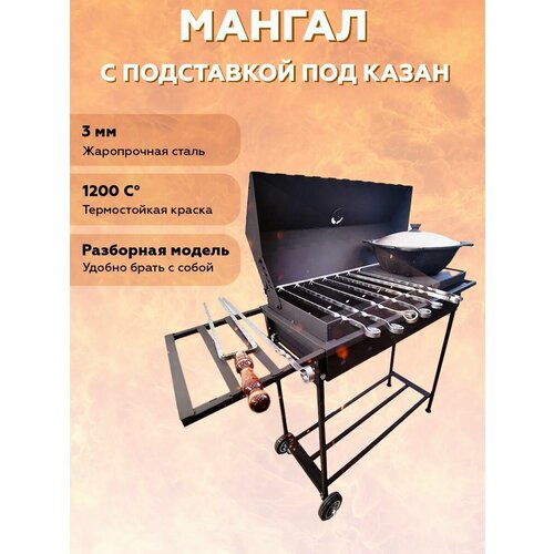 Мангал 4 мм с подставкой под казан, полкой для дров, боковым столиком