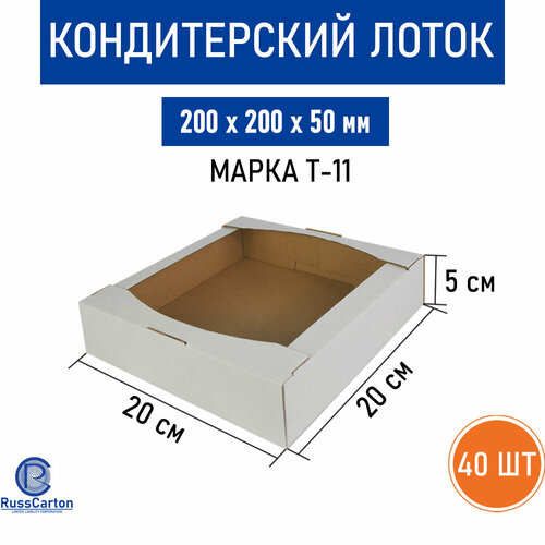 Кондитерский лоток "телевизор" RUSSCARTON 200х200х50 мм, Т-11 белый/бурый, 40 ед.