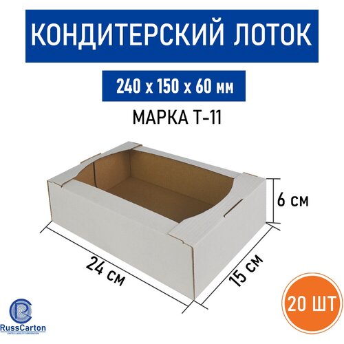 Кондитерский лоток "телевизор" RUSSCARTON 240х150х60 мм, Т-11/бурый, 20 ед.