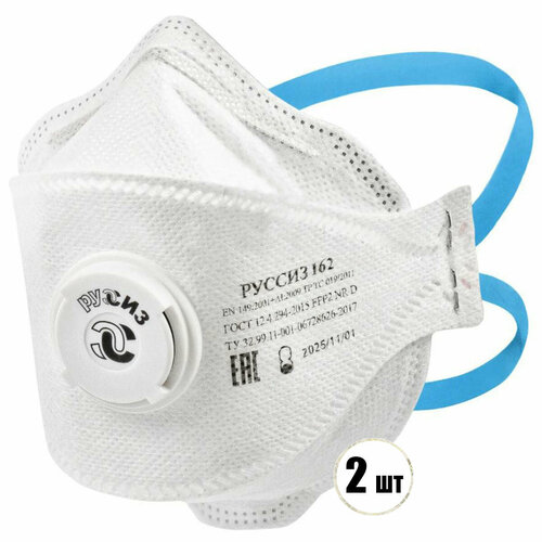 Респиратор РусСиз 162 FFP2 с клапаном выдоха (Аналог 3М 9322), 2 шт/уп