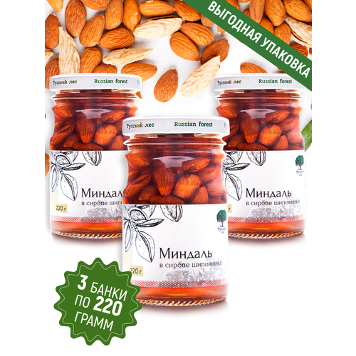 Миндаль в сиропе из шиповника "Русский лес" 220 гр. Комплект из трех банок 220 г.
