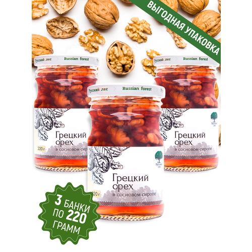 Грецкий орех в сиропе из сосновых шишек "Русский лес" 220 гр. Комплект из трех банок по 220 г.