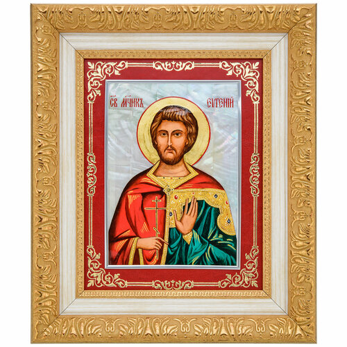 Икона на перламутре "Святой мученик Евгений" 35х30 см
