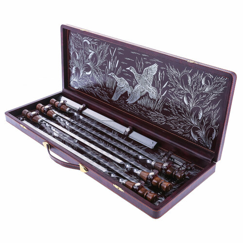 Шашлычный набор в кожаном футляре "Охота на уток"