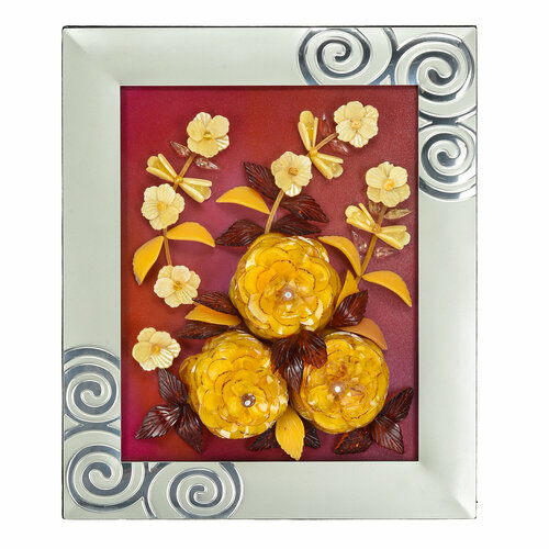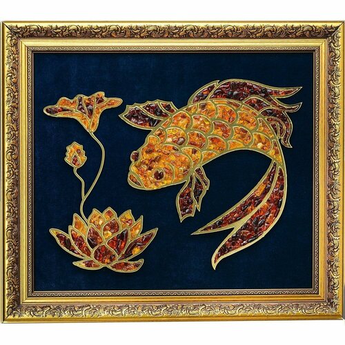 Янтарное панно "Рыбка и лотос"