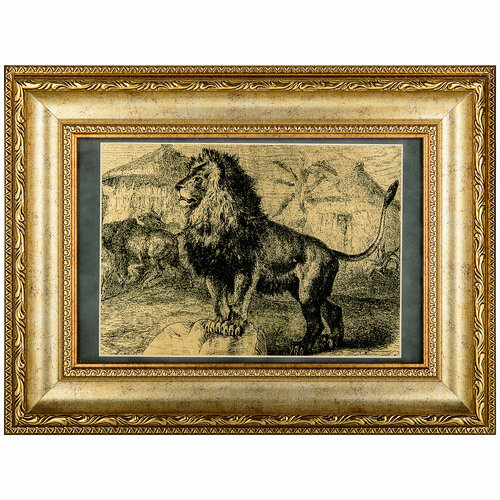 Картина на сусальном золоте "Лев на скале" 35х46 см