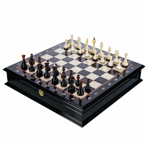 Шахматный ларец с янтарными фигурами 50х50 см