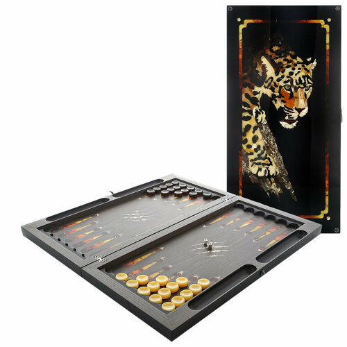Нарды из ясеня с инкрустацией и фишками из янтаря "Леопард"