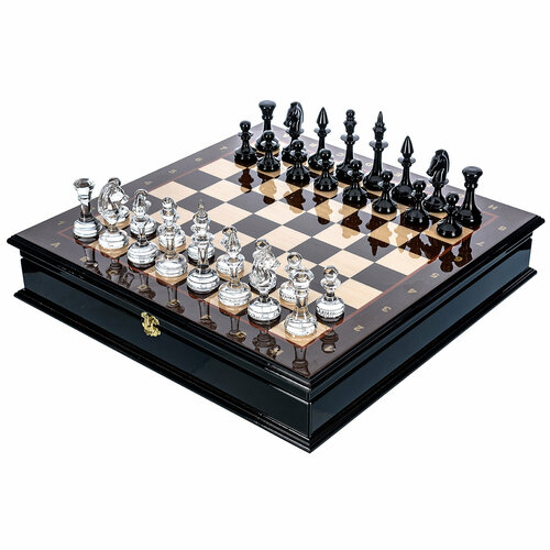 Деревянный шахматный ларец с хрустальными фигурами 48х48 см