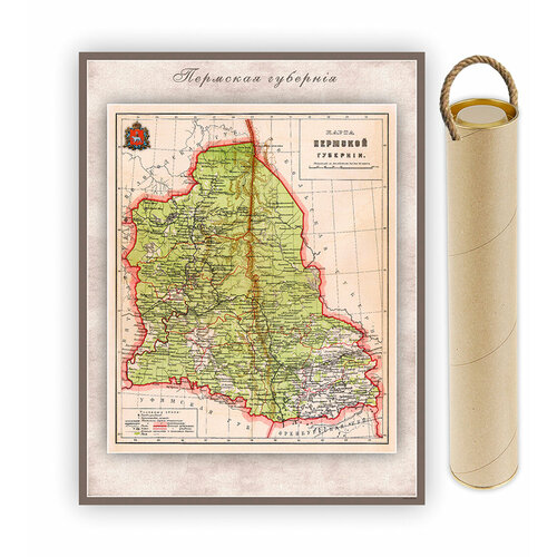 Ретрокарта. Пермской губернии. Состояние на 1892г. В картонном тубусе с подвесом.