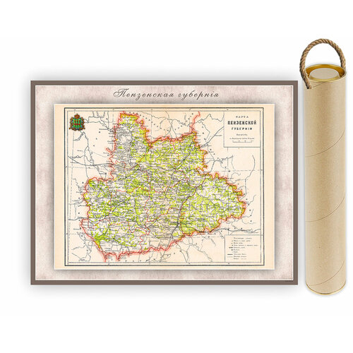 Ретрокарта. Пензенской губернии. Состояние на 1892 г. В картонном тубусе с подвесом.