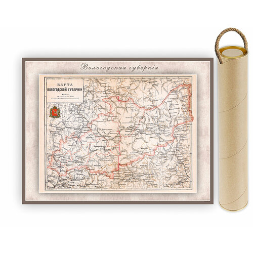 Ретрокарта. Вологодской губернии. Состояние на 1892 г. В картонном тубусе с подвесом.