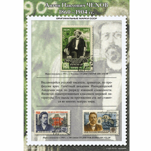 А. П. Чехов на марках СССР. Тематический набор марок .