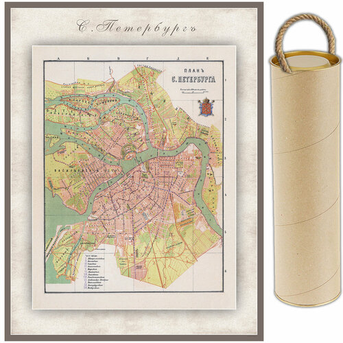 Карта-ретро города С.-Петербурга, состояние на 1898 г. в картонном тубусе с подвесом.