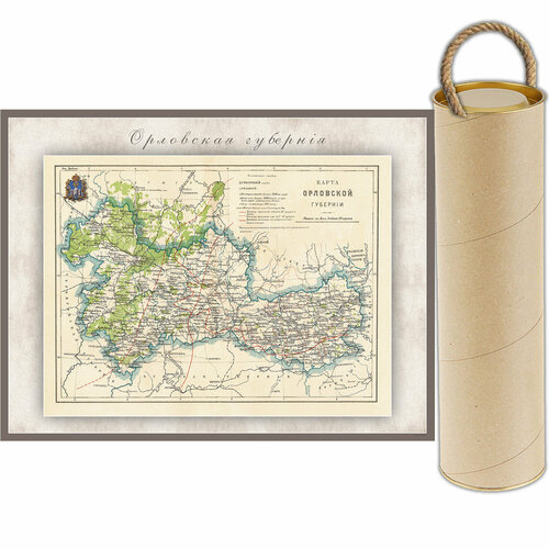 Карта-ретро Орловской губернии, состояние на 1897 г, в картонном тубусе с подвесом.