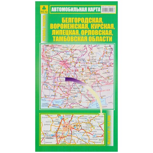 Белгородская, Воронежская, Курская, Липецкая, Орловская, Тамбовская области. Автомобильная карта РУЗ Ко