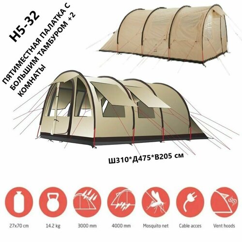 Пятиместная палатка С большим тамбуром +2 комнаты / H5-32 /