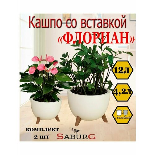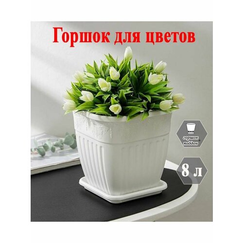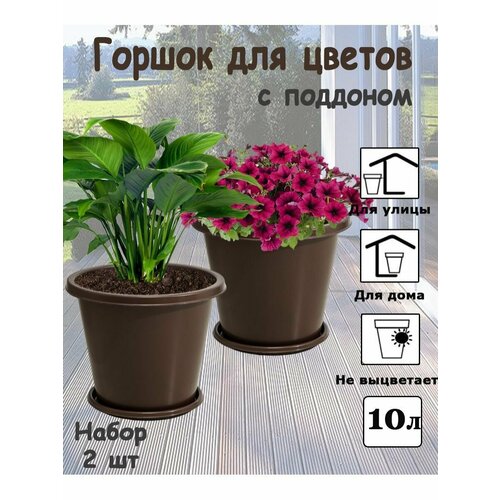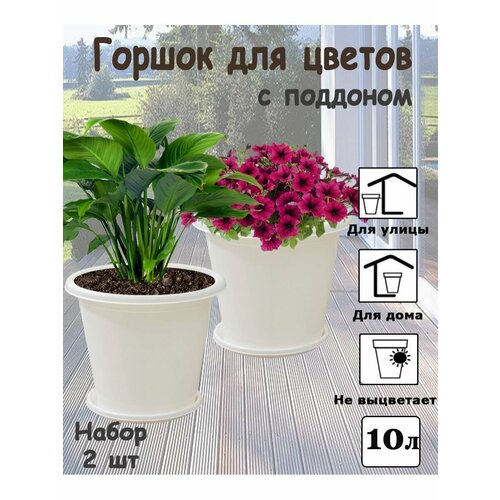 Кашпо/горшок для цветов, 10л с поддоном, набор из 2 штук