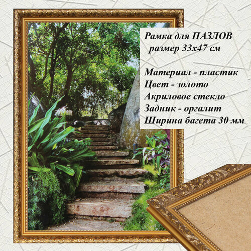 Фоторамка из пластика 33х47 см Садко 3 золото ширина багета 30 мм