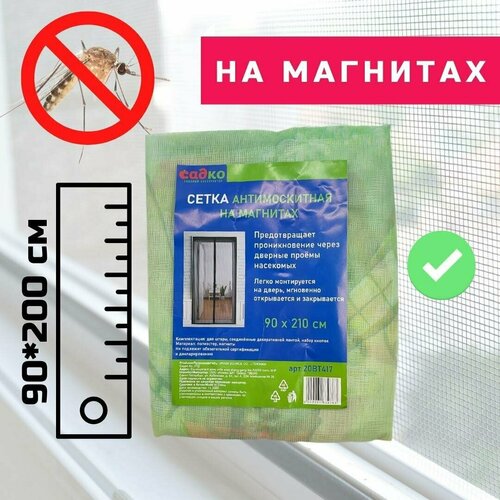 Сетка антимоскитная на дверь на магнитах садко 90х210 см от комаров, мух, мошек и насекомых, зеленая