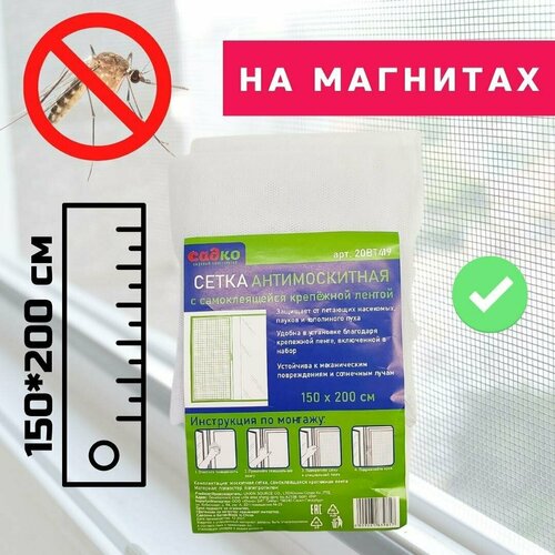 Сетка антимоскитная на окно садко 20BT419 крепежная лента 150х200 см от комаров, мух, мошек и насекомых