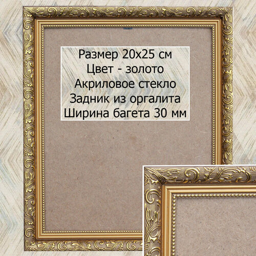 Фоторамка из пластика 20х25 см Садко 3 золото ширина багета 30 мм