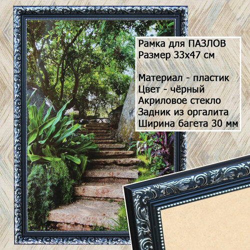 Фоторамка из пластика 33х47 см Садко 3 чёрный с серебром ширина багета 30 мм
