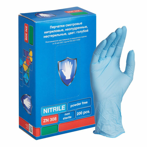 Медицинские перчатки нитриловые,нест. S&C ZN308,M голубые ,3,5гр,200 шт 100058570642