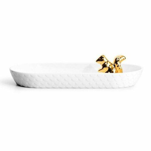 Блюдо сервировочное "Белочка" Winter 26x12 см, керамика, + золотой, SagаForm, Швеция, 5018089