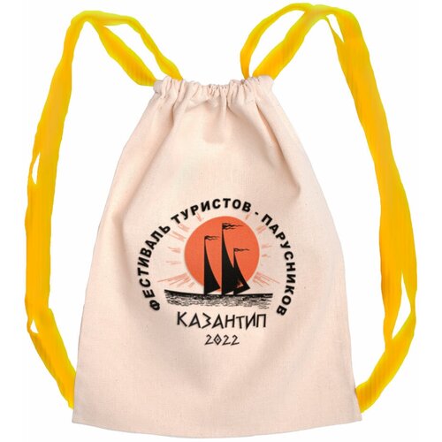 Мешок для обуви / Летний легкий рюкзак LETO "Фестиваль туристов-парусников Казантип 2022", бежевый с желтыми лямками