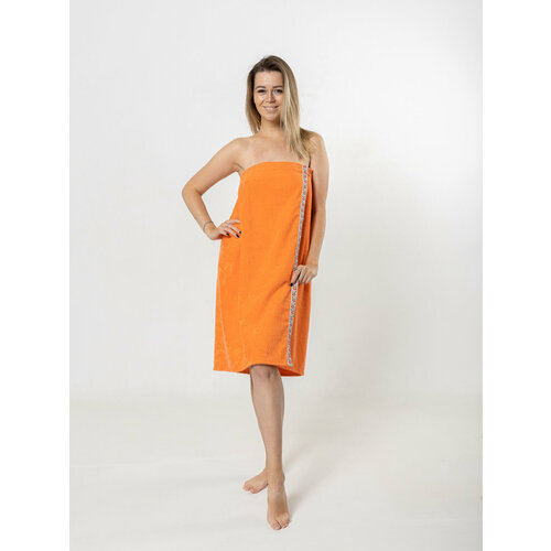 Накидка женская махровая (парео) для бани и сауны на липучке. Коралловый.