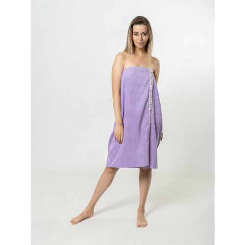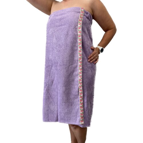 Накидка женская махровая (парео) для бани и сауны на липучке. Сирень.
