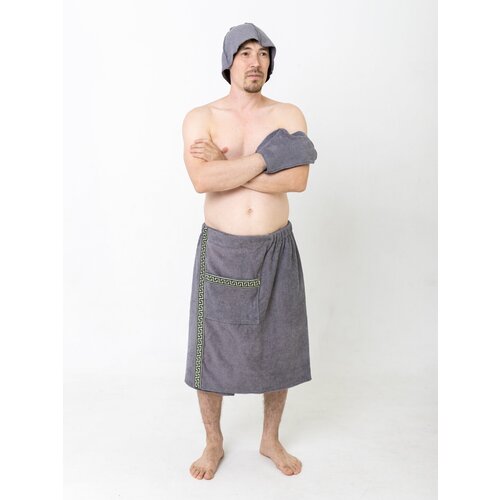Килт банный мужской махровый, комплект 3 шт. для сауны. Серый.
