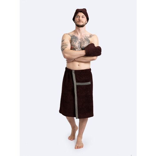 Килт банный мужской махровый, комплект 3 шт. для сауны. Горький шоколад.