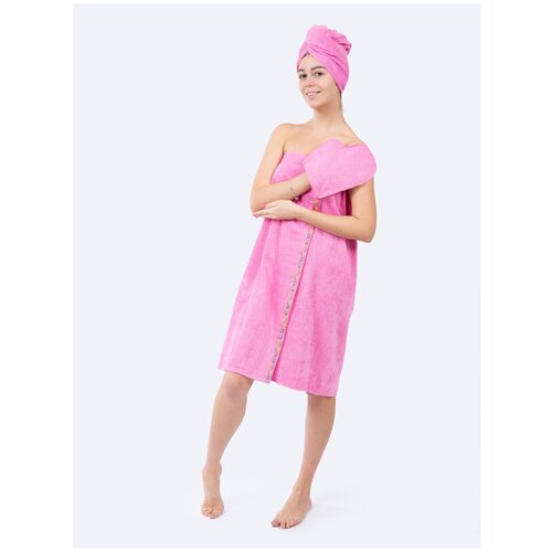 Накидка женская махровая (парео) для бани и сауны на липучке. Светло - розовый