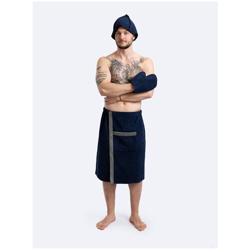 Килт банный мужской махровый, комплект 3 шт. для сауны. Темно - синий.