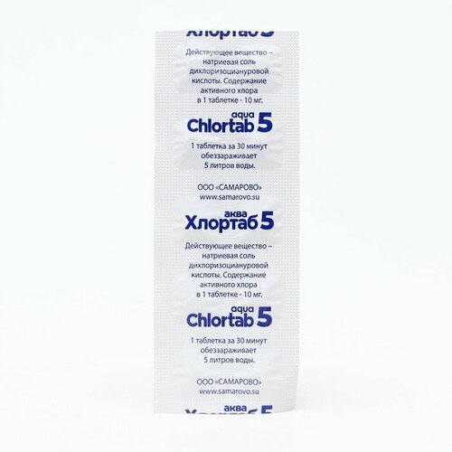 Таблетки для дезинфекции воды Хлортаб аква 5 (1 табл. на 5 л. воды), 30 шт. (10 шт. в блистере, 3 упаковки)