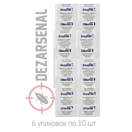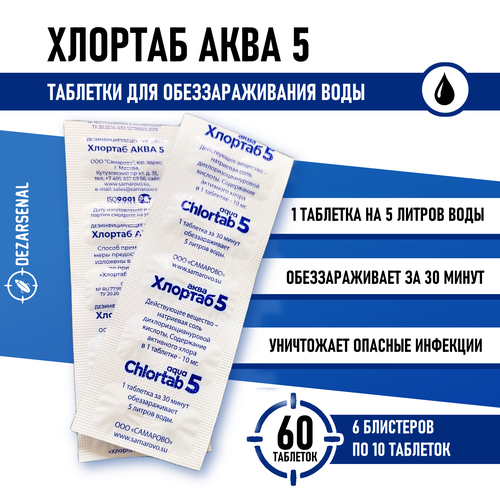 Таблетки для дезинфекции воды Хлортаб аква 5 (1 табл. на 5 л. воды), 60 шт. (10 шт. - 6 упаковок)