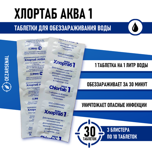 Таблетки для дезинфекции воды Хлортаб аква 1, 30 шт. (10 шт. - 3 упаковки)