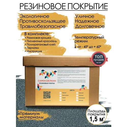 Резиновая крошка, Мягкий асфальт, комплект серый для укладки резинового покрытия 1,5м2