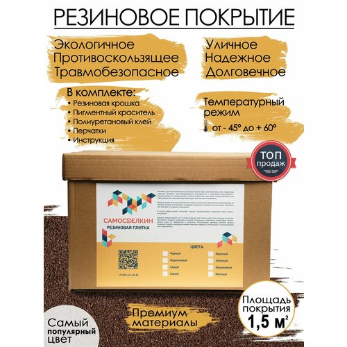 Резиновая крошка, Мягкий асфальт, Комплект коричневый для укладки резинового покрытия 1,5м2