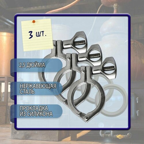 Хомут кламп соединение 2,5 дюйма (с прокладкой) 3 шт. в комплекте